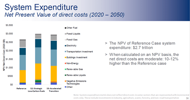 The presentation discussion downplays the cost increases for the transition as simply a modest investment above our business-as-usual expenditures. However, when put in terms of personal reference the extraordinary costs are startling. Furthermore, the fact is that the business-as-usual expenditures have a proven track record providing safe and reliable energy. On the other hand, the zero-emissions technologies proposed are unproven. As far as I can tell, they may work most of the time but there are serious concerns whether they will work when needed the most. Until the technology catches up with the reality of a zero-emissions transition it is foolhardy to proceed as planned given these eye-watering costs.