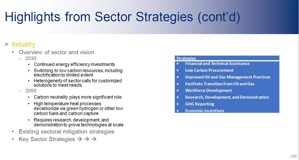 The industry slide is unchanged from the advisory panel recommendations. Kudos to the fact that their strategies recognize the technological challenges faced by a transition to low-carbon processes.