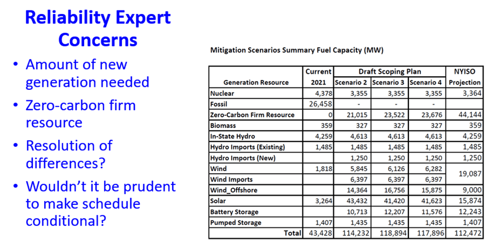 There is another issue for the Council. Comparing the Draft Scoping Plan capacity resource distributions with the NYISO projected capacity shows significant differences. It is not clear how will those differences will be resolved.