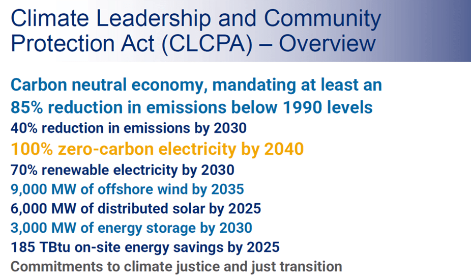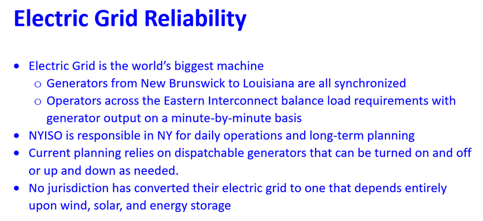 I tried to make the point in the following slide that most New Yorkers are unaware of the Climate Act. Not only that but fewer still understand the scope and magnitude of the changes required in order to meet the Climate Act targets and even fewer are aware of the costs, benefits, and threats to reliability inherent in the massive transition of our existing energy system to the net-zero targets of the Act. The presentation hit the points that I think the public should understand.