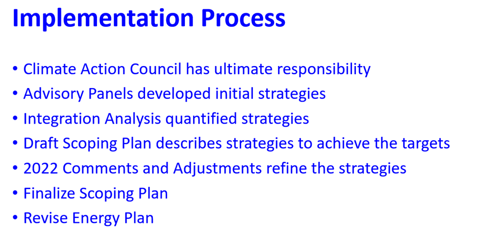 This slide more or less presented the material in the Climate Act Background section above. I did mention that 10 public hearings have been scheduled.