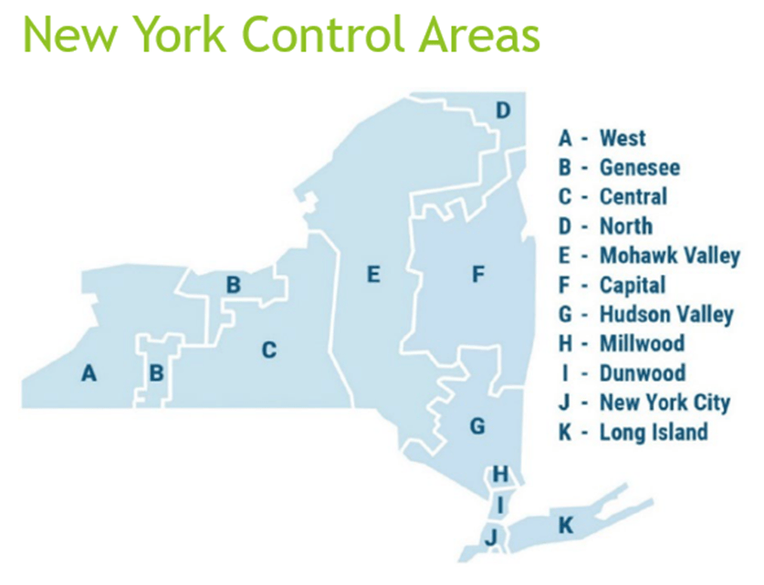 NYISO operates the electric grid for New York State. There are 11 control areas with specific load, interconnection, and generation characteristics that must be addressed on a six-second basis to keep the lights on. New York State’s major challenge is that there are limits to transmission to the highly populated New York City and Long Island control areas. The NYISO has to address different time scales for load management:
