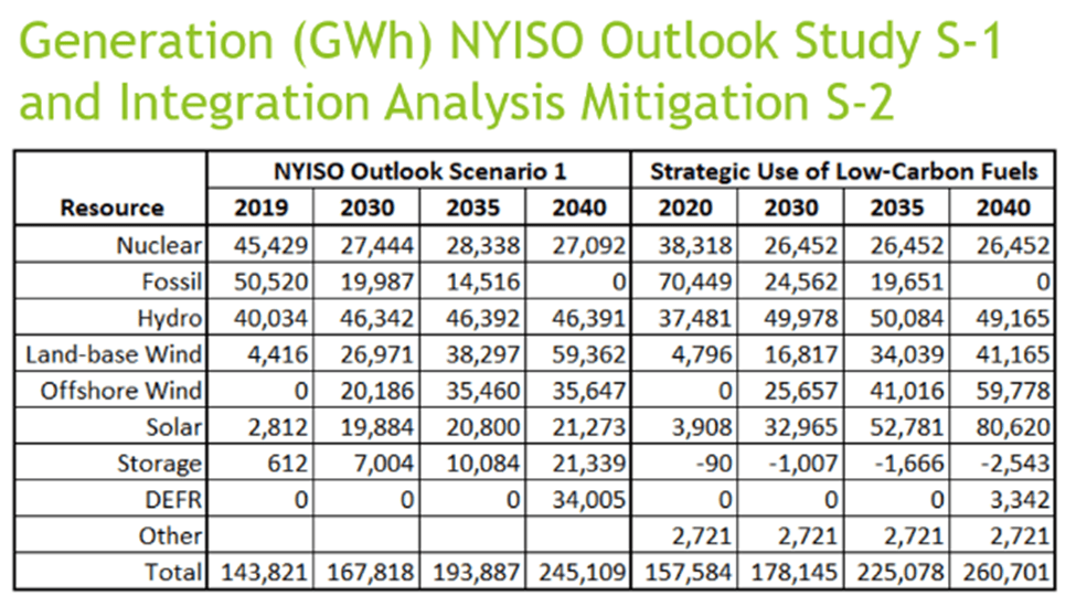 I noted earlier that I was disappointed that the Hochul Administration ignored my comments on the Integration Analysis. The capacity factor table shows one of the points I made in my comments. I pointed out that the Integration Analysis land-based wind capacity factors were unrealistically high. The model projected the 2020 generation with a capacity factor of 29% but the 2021 observed capacity factor was only 22%. As a result the Integration Analysis projections for the land-based wind needed to meet the load is too low. For all renewable resources the Integration Analysis capacity factors are higher than the NYISO projections. I prefer the projections from the organization responsible for New York reliability to those from the unelected bureaucrats who have no such responsibilities.