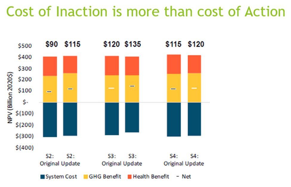 There is no documentation that lists the specific costs of control strategies, the expected benefits, or the expected emission reductions making it impossible to estimate the total costs of the Climate Act. That information is necessary to determine whether the Integration Analysis projections are feasible. The Draft Scoping Plan claims that the cost of inaction is more than the cost of action but a variation of this graph is the only documentation for that claim. I directly addressed this misleading and inaccurate statement in my comments at the Syracuse public hearing but there has been no response or mention of the issues I raised at any Climate Action Council meeting. The statement is misleading because costs are given relative to the Reference Case and not a business-as-usual case as explained earlier. I believe that the Reference Case includes at least the cost of the “already implemented” electric vehicle mandate. That means that all of the costs for electric vehicles, charging infrastructure, and distribution system upgrades necessary for electric vehicle charging are excluded from the cost of action. Correcting that “trick” would mean the costs of action are more than the costs of inaction.