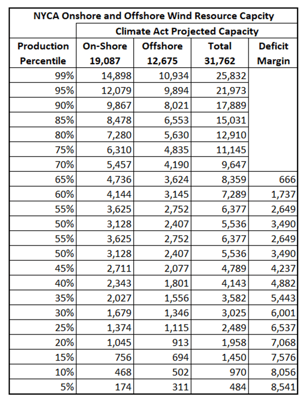 Moreover, I believe it is unlikely that additional sources in a region will change the availability much. I do not expect any significant change to the low-end onshore wind numbers when all the land-based wind resources proposed to meet the Climate Act net-zero transition are developed. The overall distribution of expected offshore wind will be similar although the numbers will show slightly higher availability.