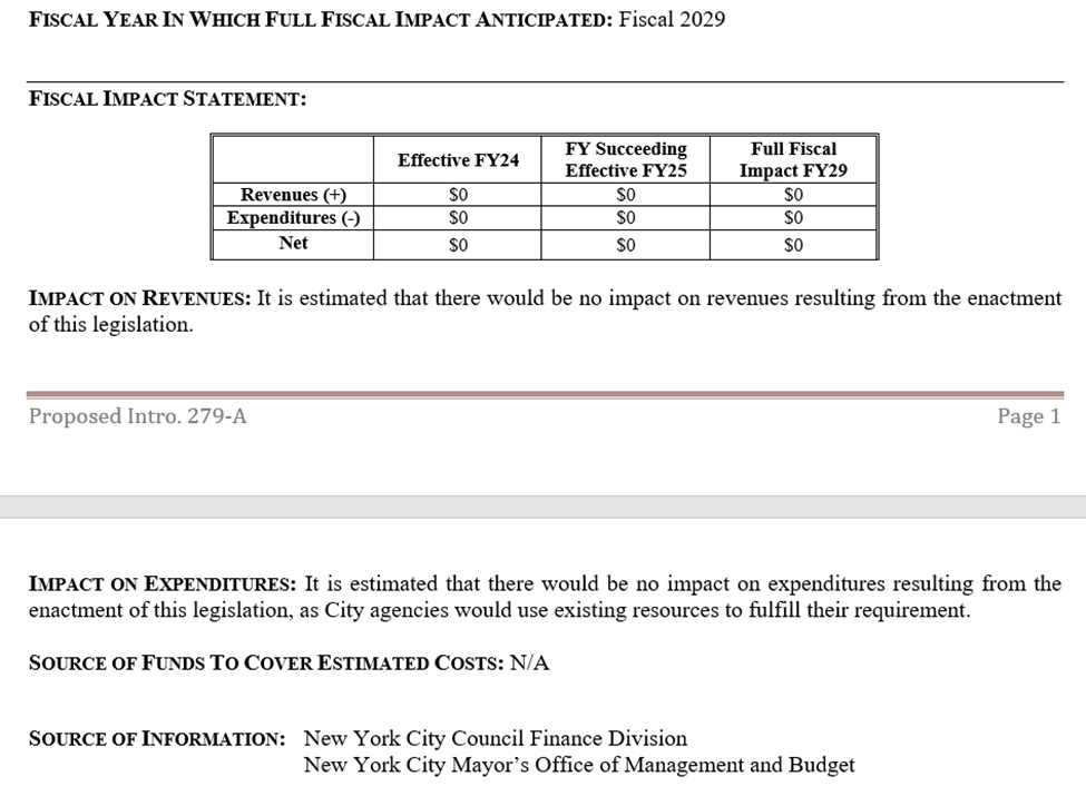 I guess the current fiscal impact statement is a placeholder. Presumably sometime before Fiscal Year 2029 the expenditures and source of funds will be determined. Then the cost exception requirements to procure zero emission vehicles will be considered.