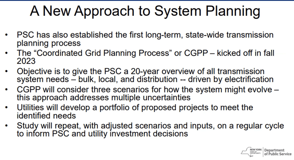 Note: This documents all the slides in the Grid Planning to Meet Climate Act Goal presentation. I also prepared a summary of the material in this post.