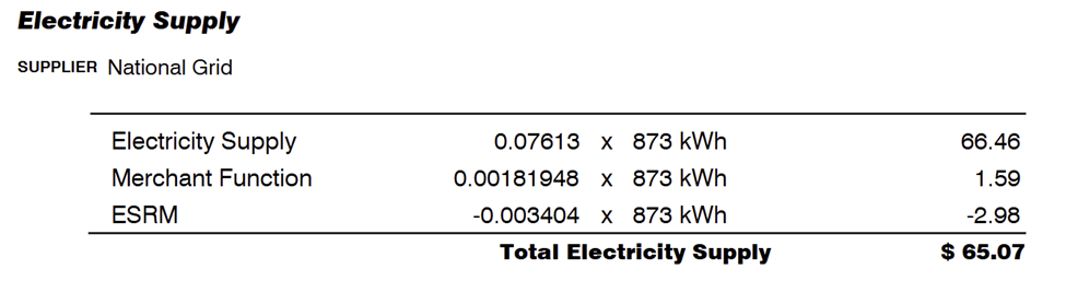 I looked up my electric bills. Here are screenshots of current Niagara Mohawk Power Corporation, dba– National Grid electric rates