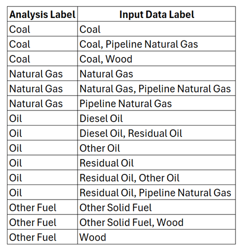 This analysis of annual New York CO2 emissions from electric generating units uses data from the EPA Clean Air Markets Program Data (CAMPD) database. I downloaded unit-level data for all pollution control programs so that I can compare emissions from the start of RGGI in 2009 to a baseline before the program started. The data include a record describing the primary fuel type These records are not standardized and include more categories than I need so I consolidated the labels as shown in Table 1.