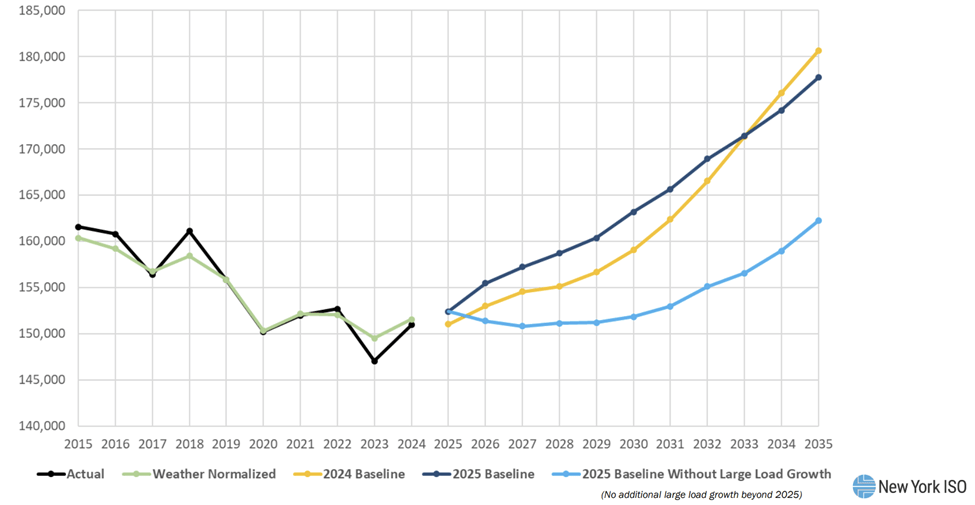 Figure 3 also lists historical and weather normalized annual loads from 2015 to 2024 but includes “additional load growth from large loads”. This increases the 2035 baseline around 17,000 GWh or another 10%. This would make it all the more difficult to provide sufficient zero-emission generating resources to comply with the Climate Act mandate to have a 100% zero-emission electric grid by 2040.