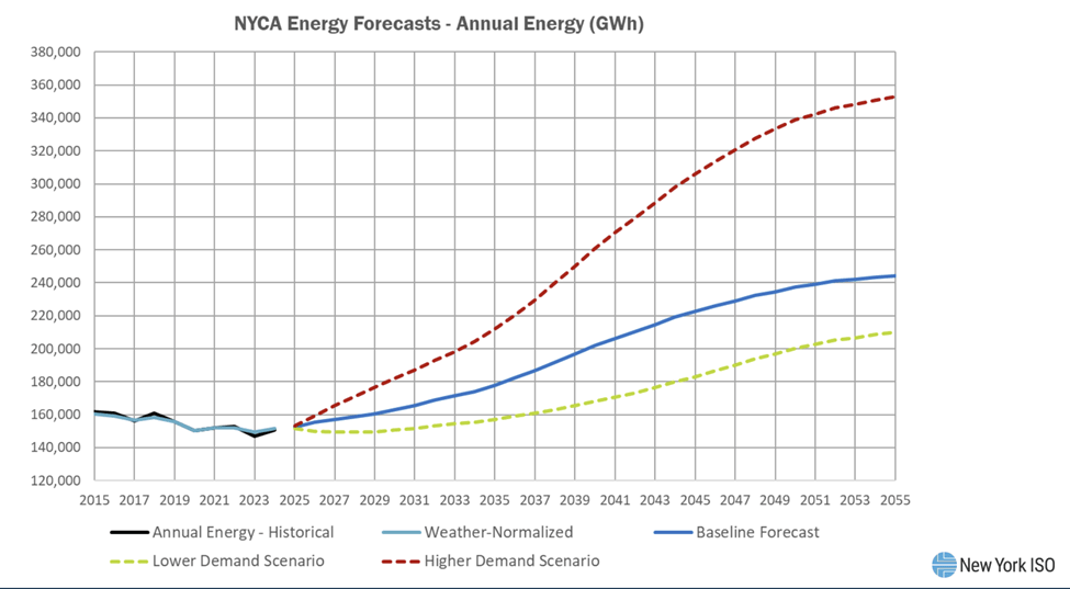 Figure 2: NYISO Historical New York Control Area (NYCA) Annual Energy and 10-Year Forecasts (GWh)