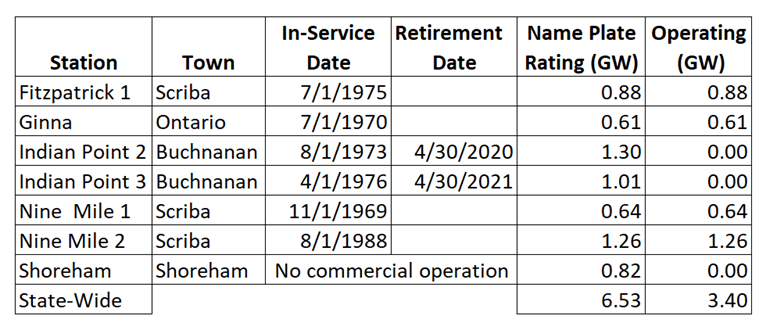 Table 1: New York Nuclear Generating Plants