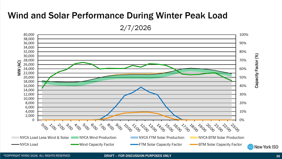 Electric systems must be built around reliability during peak demand. One of my primary concerns with the Climate Act weather-reliant renewable energy mandates is correlated weather-dependent resource variability because the conditions that characterize the highest loads also have the weakest expected wind resource availability. That makes electric resource planning for reliability during the peak period especially challenging.