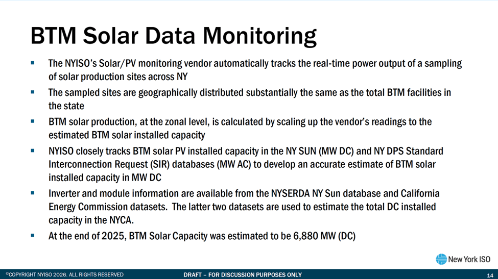 - Behind the Meter (BTM) and Front of the Meter (FTM) Solar Performance