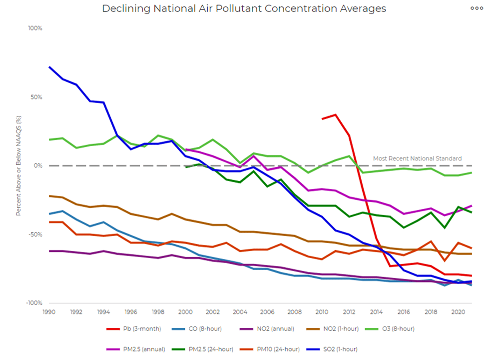 The Clean Air Act, which was last amended in 1990, requires EPA to set National Ambient Air Quality Standards (40 CFR part 50) for six principal pollutants (“criteria” air pollutants) which can be harmful to public health and the environment. The Clean Air Act identifies two types of national ambient air quality standards. Primary standards provide public health protection, including protecting the health of “sensitive” populations such as asthmatics, children, and the elderly. Secondary standards provide public welfare protection, including protection against decreased visibility and damage to animals, crops, vegetation, and buildings.
