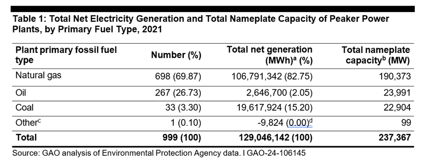 The GAO report determined how many peakers are in the country and where they are located. This discussion failed to discuss another impactful nuance. The GAO analysis determined the number of peaking power plants as a function of how much power plants ran in 2021: