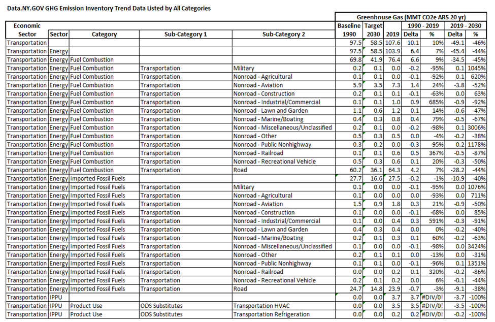 On June 1, 2023 the Department of Environmental Conservation (DEC) and New York State Energy Research and Development Authority (NYSERDA) hosted the first webinar in a series “to inform the public and encourage written feedback during the initial phase of outreach” for New York’s proposed cap and invest program. At the time of this writing the only documentation available for the webinar are the slides so this article only addresses one question. Where does the state stand relative to the 2030 transition target of a 40% reduction of GHG emissions from the 1990 baseline.