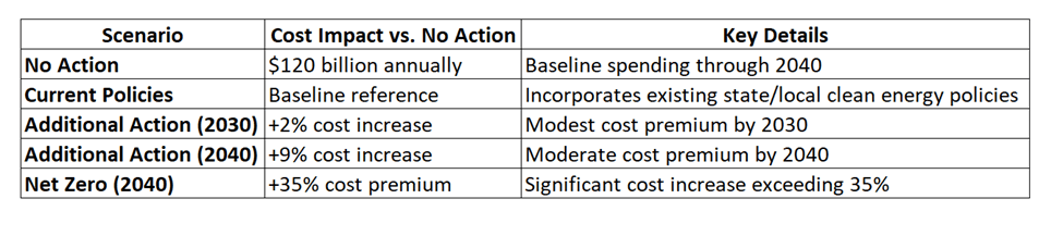 - Moderate Efficient Electrification: Some electrification of heating and transportation, with basic building envelope efficiency measures