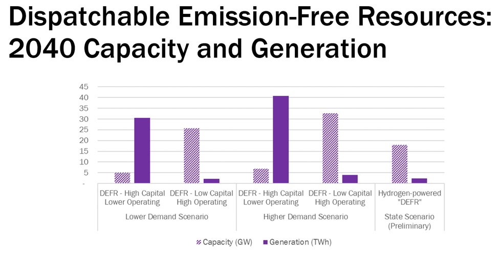 In a post describing the Zero Emissions by 2040 Technical Conference session Gap Characterization I summarized work by Prof. C. Lindsay Anderson, Chair of Department of Biological and Environmental Engineering Cornell. Professor Anderson described an analysis her group did using a model they developed. They made projections for expected loads and potential resources then used 22 years of hourly historical data to model the system. Without considering cost constraints they assessed system vulnerabilities to evaluate periods where there was insufficient generation to meet projected loads. Even with optimistic projections they found there will be periods during the coldest and hottest periods where there will be insufficient generation from wind, solar, and energy storage resources. That gap must be filled with DEFR.