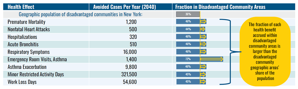 In a recent article Doreen M. Harris who serves as President and CEO of the New York State Energy Research and Development Authority and Chair of the New York State Energy Planning Board summarized the health benefit message in the Draft Energy Plan. She said: “Additional analysis shows that continued implementation of the State’s energy policies would provide substantial public health benefits throughout the State in all communities, with the greatest benefits realized in disadvantaged community areas.” She made some specific claims: “This includes reduced emissions and cleaner air resulting in avoided hospitalizations, work loss days and emergency room visits due to asthma.”